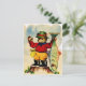 Vintage color cartoon illustration of a bear wearing routine clothes for fly fishing - high boots, hat, basket at his waist and holding a huge fish at his side