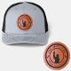Custom Leather Patch Hat, Sytle: Adult Retro Trucker Cap, Color: Heather / Black, Shape: Circle