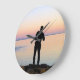 Fisherman Silhouette Fishing Large Clock