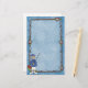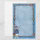 Stationery has fun swimming fish pattern in blue. Fishing pole border and Fisherman with his fishing pole and other fishing gear.