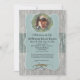 This fisherman sympathy photo design comes with a fishing lure with fishing line swirled around the lure. At the top there is a country wreath made out of pine, cedar and eucalyptus which circles the photo and all sets on top of a light brushed teal with a white border banner. This then sets on top of a barn wood background with a darker brushed teal behind the most important details of the invitation.