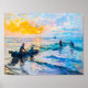 Fishermen at Sunset Impressionist Coastal Scene Poster