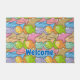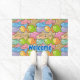 Seamless pattern background of colorful happy, smiling fish cartoons. Custom text.