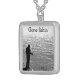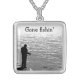 Let's get away from it all and go fishing! Easily customize or remove the text on this necklace which features a black and white image of a solitary fisherman standing on a rock ledge at Seneca Lake in Geneva, New York. The text reads: Gone fishin'