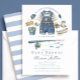 Celebrate your little fisherman with this charming fishing-themed baby shower invitation! Featuring a watercolor-style baby outfit with denim overalls, fishing rod, fish, and nautical details in soft blue tones, this design creates a cozy, rustic lake-inspired vibe. Paired with a classic blue stripe pattern backing, it’s perfect for a boy baby shower, “little fisherman” theme, or outdoor-loving parents. Fully customizable with your event details, this invitation is ideal for lakeside, nautical, or fishing-themed celebrations.