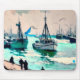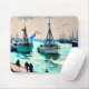 A mousepad with a design of boats leaving a harbor, possibly with the image of a blessing or a religious figure in the foreground. The image could evoke a sense of peace, calm, and embarking on a journey or adventure.
