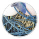 A photographic design of crab fishing rope and floats from a fishing boat.