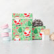 Creative fishing Christmas gift wrap featuring funny Santa Claus fisherman, Christmas candy and cookies.