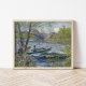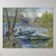 Fishing in Spring, the Pont de Clichy (Asnières) (1887) | Original artwork by Dutch post-impressionist artist Vincent Van Gogh (1853-1890). The painting depicts two fishing boats in the water near a bridge in soft shades of blue and green colors.