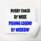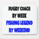 This humorous text design featuring the phrase "Rugby Coach by Week Fishing Legend by Weekend" is perfect for anyone who is a rugby coach by week but a fishing legend by weekend.
