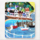 A good quality mousepad with a handpainted paper collage design of a small harbor with fishing boats and seagulls. See also matching greeting cards, gifts and apparel