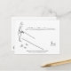 Do you happen to be looking for a fishing postcard? Perhaps you're looking for a duck postcard. Well, guess what. This postcard combines the best of those two kinds of postcards in a funny way. How? Take a look. In this cartoon set in the outdoors, a fisherman is fishing beside a lake. A talking duck swims toward him and asks a funny question: "Why aren’t you content with fish sticks? I'd be content with breadsticks." What's the fisherman's answer? Who knows? What would your answer be? Only you know. At any rate, if you'd be content with a funny cartoon fishing postcard, this one may be for you.