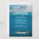 Male retirement party invitation with a saltwater fishing theme. White text is printed over an underwater background of sea blue with a swordfish at the bottom. Three printed font styles are used and party information is added in a paragraph.