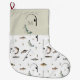 Perfect! Exactly what I ordered! I uploaded a picture of my blue chow, and the screen print was incredible. the back side of the stocking was the red and black checkered print. my puppy's name was also printed on the cuff of the stocking. PERFECT! Highly recommend this product! My puppy's name was screen printed onto the cuff of the stocking, the font was perfect!