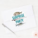 Fishing theme surprise party stickers, or envelope seals, to use with our fishing themed adult party invitations. (Or change the text to "You're Invited", or "Birthday Party"). Teal blue printed text is centered with saltwater fish images and a rod and reel. Use to celebrate any type of occasion for the man who lives to fish. Round and square stickers will work best. They will print as you see them so choose a correct shape.