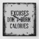 Excuses don't burn Calories Clock. Fun and funny motivational fitness quote that speaks the truth. Square items include grunge edges. Great for the gym.