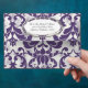 NOTE: This is a flat printed invitation envelope, there are no raised layers or actual metal or jewels in it. This is a graphically designed image that looks quite real, but is flat. If you are DIY handy, you could easily add real jewels to this design. COLOR PALETTE: off white, plum purple, deep lavender, black and silver metallic look. DESIGN COLLECTION: This is a truly elegant and sophisticated Matching Wedding Invitation Envelope Collection with a formal modern vintage flair! Shown here in creamy white on aqua blue, the invitation has an elegant dramatic dimensional appearance. For a beautiful finishing touch select the matching invitation envelope of the same design. This is artwork designed by Audrey Jeanne Roberts created from antique vintage look worn damask patterns, a beautiful frame with diamond look "jewels" dangling from it and layered over a silver look ribbon. There are RSVP response cards, Reception Invitations, Wedding Program, Driving instructions, Hotel Accommodation cards, postage, stickers and more available to match. If there's a product you would like to have created that isn't offered just message us!