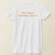 My overall review is that the T-shirt is nice, it fits true to size however the font is significantly smaller than advertised and you can't read it. The printing is unreadable and there is a strain to read it. It does not look like the advertised product. Maybe the shirt color is darker or a larger more visible font should have been used. Photos with and without flash and font is barely legible.