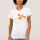 Fitted White tshirt with orange firefly and black flight trail in the middle of the shirt.
