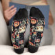 Get ready to dance the night away with our playful and spooky “Monster Mash Socks”! These socks feature a delightful array of classic Halloween characters, including ghosts, pumpkins, black cats, and witches, all in a fun, cartoonish style. The dark background makes the colorful characters pop, while elements like full moons, bats, and cobwebs add to the eerie yet whimsical atmosphere.