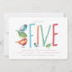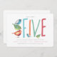 Plain white envelopes are included with paper invitations and will come to fit the invitation size you select. If you don’t need the envelopes, you may choose to not receive them by selecting the dropdown below "Envelopes" and choosing "None." If you’d like to have a design on your envelopes, you can browse all of these available envelopes to find the design that complements your Five Birdie Fifth Birthday Party Invitation.