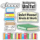 Five Book Quotes for Bookworms Collection Sticker features the phrases: Shh! Me Be Readin', Quiet Please! Brain at Work, Bookworms Unite! Right after this Chapter, and Bookish. These humorous phrases are accompanied by cute book graphics. A perfect gift idea for book lovers.