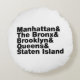 New York City is often referred to collectively as the 5 boroughs (Manhattan, The Bronx, Brooklyn, Queens and Staten Island).