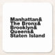 New York City is often referred to collectively as the 5 boroughs (Manhattan, The Bronx, Brooklyn, Queens and Staten Island).