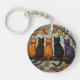 Five Cats on a Tree Branch Stained Glass Style Keychain