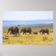 FIVE ELEPHANTS ON BROWN GRASS POSTER