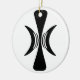 Lightweight, smooth, pure white ornament with nice sheen. Perfect size to be seen from across the room ... and to attract closer inspection! Price was great for ordering enough for the whole family! Clear, bold black design just as requested. Matches the order exactly. Just so nice!