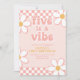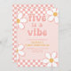 Five is a Vibe Retro Check Pink Daisy Invitation