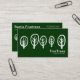 A modern business card with an attractive, original motif consisting of five cartoon style trees. Suitable for a variety of businesses. Ready to be customized. The company details are on the front with name and contact details on the reverse side, background colors are customizable.