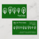 A modern business card with an attractive, original motif consisting of five cartoon style trees. Suitable for a variety of businesses. Ready to be customized. The company details are on the front with name and contact details on the reverse side, background colors are customizable.