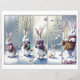 Five whimsical snow bunnies Christmas bookmark set