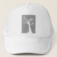 Five adorable abstract yellow birds hang out in a white tree against a gray background on a hat
