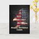 Bald eagle with an American flag graphic on black slate rock background for birthday.