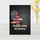 Bald eagle with an American flag graphic on black slate rock background for 20th birthday.