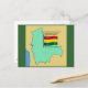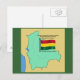 The flag and outline map of Bolivia with the Plurinational State of Bolivia printed in English, Spanish, Quechua and Aymara.