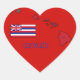 Heart sticker with the flag and county map of Hawaii with each county labeled and in different colors.