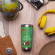 Create a personalized gift for your flag football coach or your favorite flag football player when you add their name to this tumbler or travel mug. The name appears in white lettering against a grass green background and is accented by an illustration of a football and a colorful assortment of flag football belts.