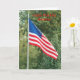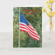 Photography,of an American flag on front and potted flowers on back, and an inside birthday greeting adorn this card for the one born on U. S. Flag Day, June 14th