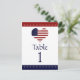 Beautiful USA flag heart patriotic or military themed party table number cards. These vibrant colored patriotic table number cards are a wonderful addition to any patriotic themed party or military party. The text is in template form on this page ready for you to add your table numbers. The design features an American flag heart on a white background, in colors of red, white and blue on a white background. . The top and bottom of card are red and blue with white stars. A truly wonderful addition to your patriotic party tables! This design is a match to many of our patriotic and military themed invitations we sell in our store. For more styles and designs of patriotic or military cards, invites, stamps, and gift items, please visit our store!