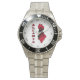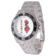 Watch face is the outline map of Albania and country name filled with the flag of Albania. Watch numbers are in roman numerals. Choose your own background color and select from over a dozen different styles each for men, women and kids.