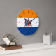 Clock with the flag of Albany, New York. An orange, white, and blue flag with the city emblem in the center