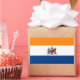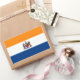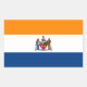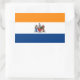 Srickers with the flag of Albany, New York. An orange, white, and blue flag with the city emblem in the center