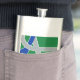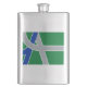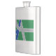 Flask with a design with the flag of Albany, Oregon. A green, gray, and blue flag