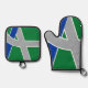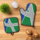Pot Holder Set with a design with the flag of Albany, Oregon. A green, gray, and blue flag