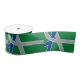 Ribbon with a design with the flag of Albany, Oregon. A green, gray, and blue flag