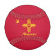 Baseball with city of Albuquerque, New Mexico; red flag with yellow bird and symbol of New Mexico